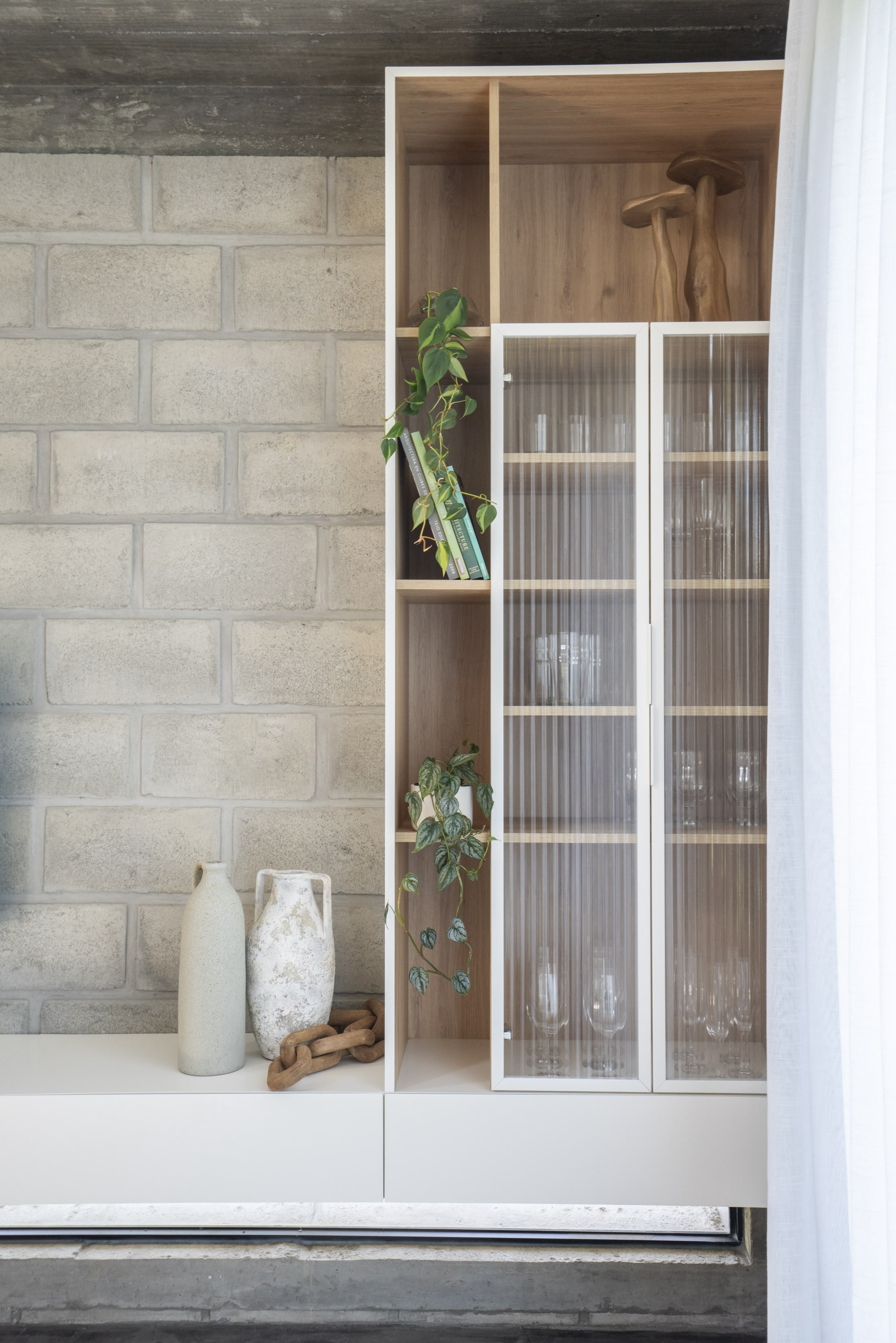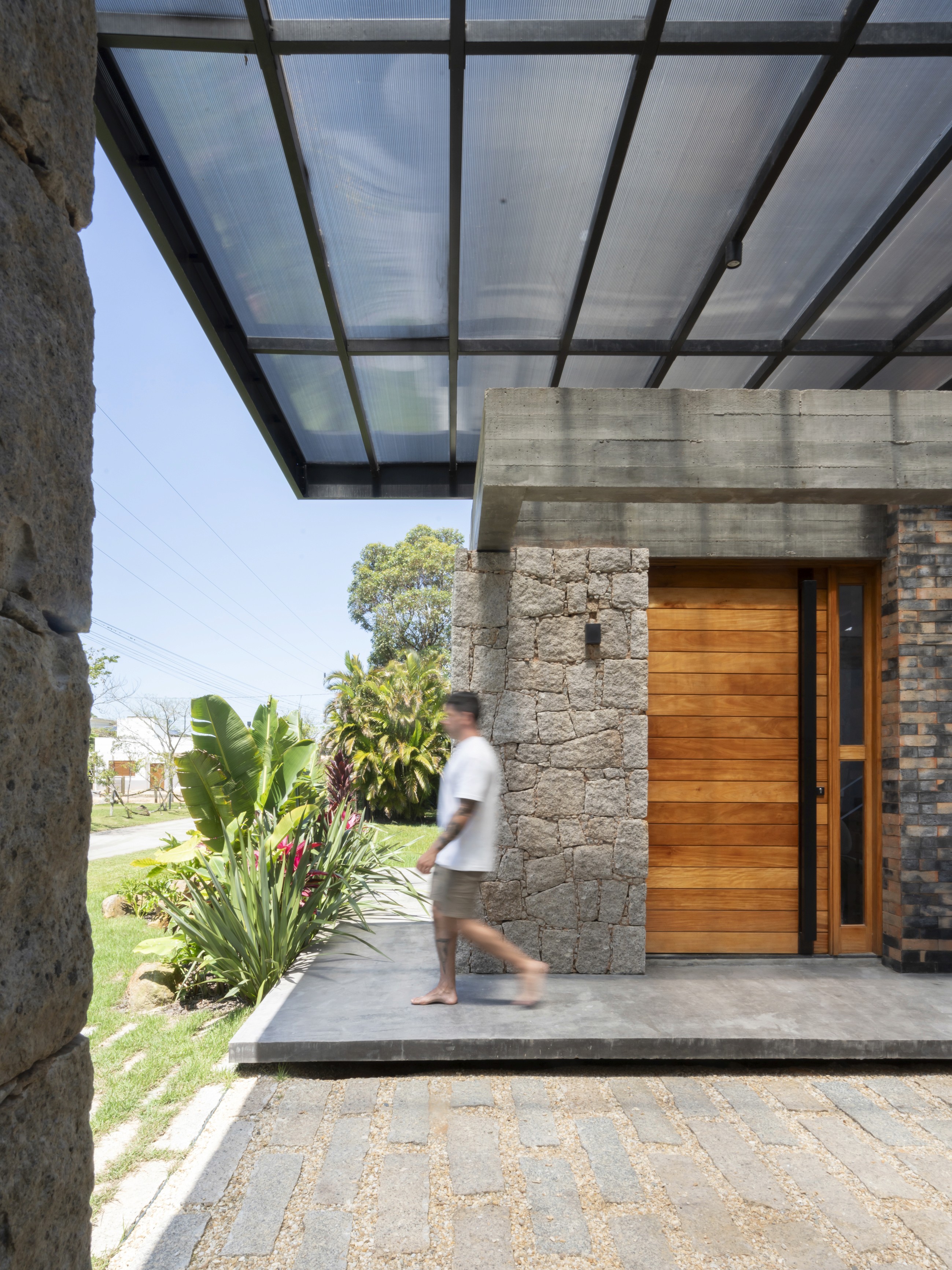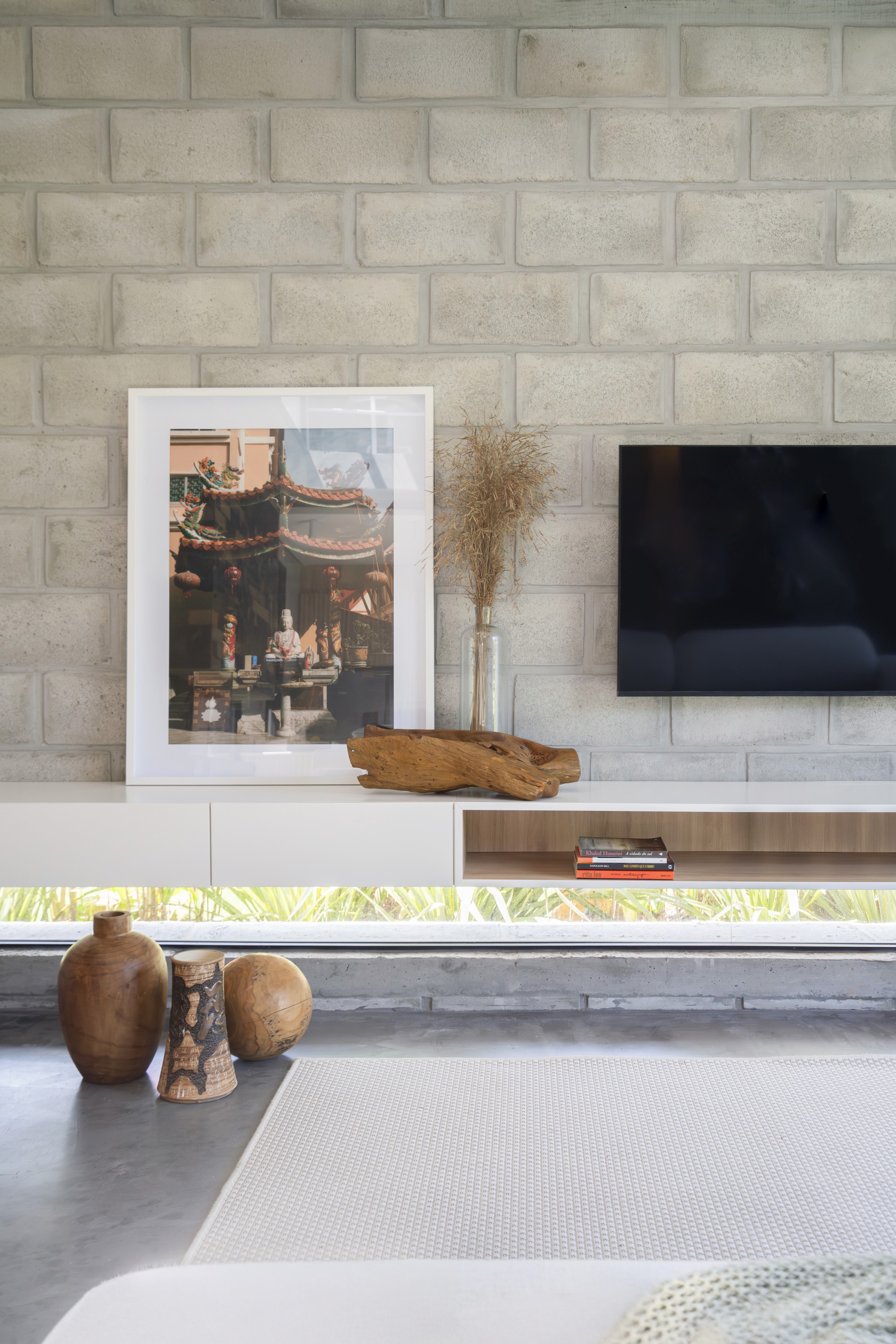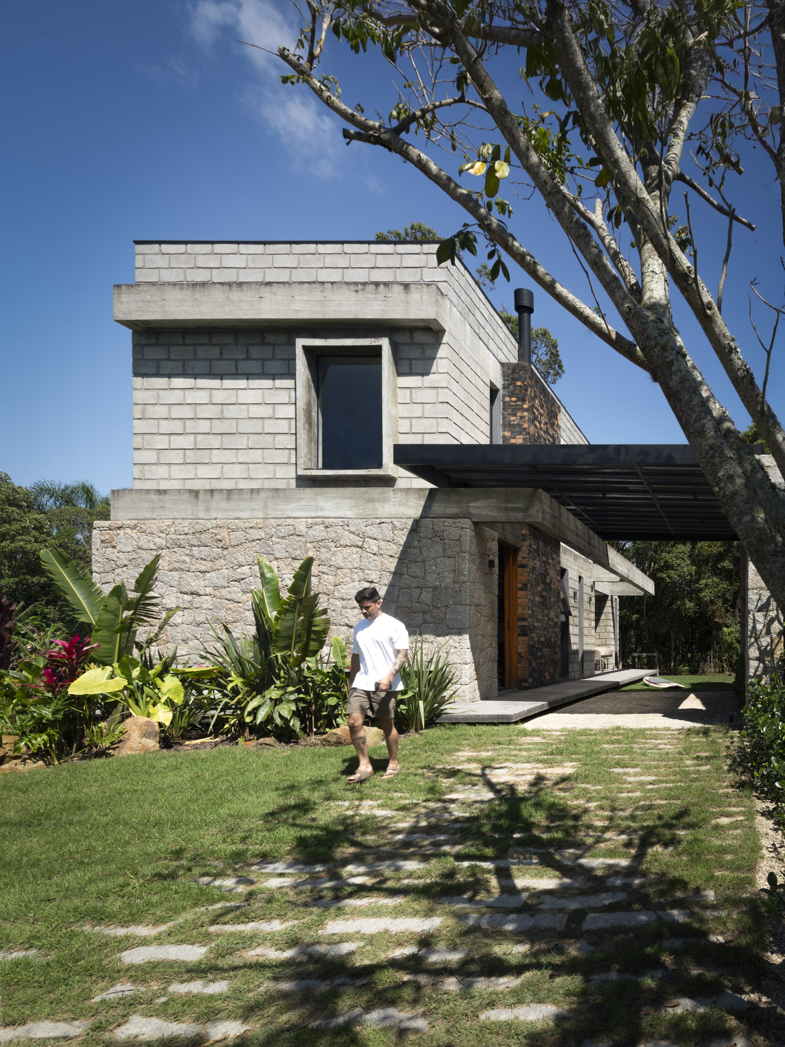 O desafio da Casa Ibira foi materializar 25 anos de vivências na Ásia em um refúgio contemporâneo no litoral. O projeto traduz essa trajetória através da honestidade dos materiais, combinando a pureza dos blocos estruturais, concreto aparente e pedra natural. Essa base neutra e texturizada funciona como um cenário estratégico, permitindo que o protagonismo do interior pertença aos detalhes e ao acervo de memórias que compõem os ambientes.